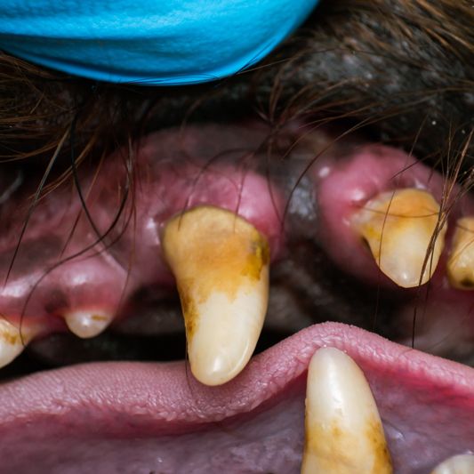 Dental health is a very important part of your pet's overall health. Periodontal disease can cause bad breath, tooth and gum infections, and pain. If left untreated it can affect the kidneys, liver and heart. Your pet's teeth and gums should be checked at least once per year; or sooner if you notice any of the following symptoms: bad breath, loose or broken teeth, yellow or tartar covered teeth, excessive drooling or salivating, or pain in or around the mouth. Most pets develop some dental disease by the age of three.